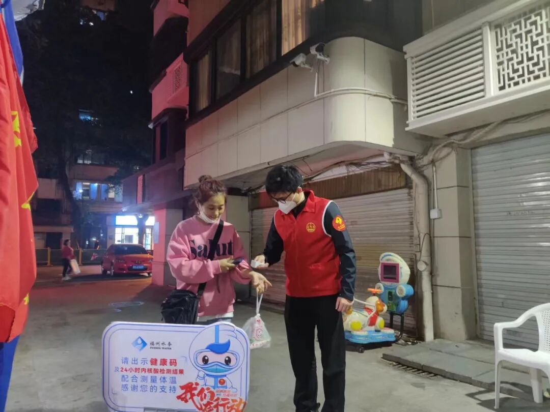 在洋中新村、浦东小区、邮政公寓大门口的志愿者对每一位进入小区的业主都做好测温、扫码、登记等工作,对每一辆车辆也逐一登记,仔细检查后方可放行。发现核酸检测报告超过24小时的业主,立刻劝其进行核酸检测,并将相关情况上报社区。洋中新村居住了较多老人,且只会讲福州话,为此温泉公司决定将洋中新村点位早班及午班人手分别加派至3人,并每班都搭配一名会说福州方言的员工,以便与居民沟通。通过这几天的相处,在志愿者们耐心的沟通下,洋中新村大部分居民都能积极配合志愿者开展疫情防控工作,并主动帮忙志愿者劝导其他居民积极配合。“下沉干部的到来,大大缓解了社区的工作压力,也为社区的疫情防控工作注入了坚实的力量,非常感谢他们的坚守与付出。”浦东社区党委书记任沐芳说。在“疫”线淬炼成色,用实际行动诠释国企的责任与担当,让那一抹红成为战“疫”当中的靓丽风景线,用实际行动为我市疫情防控工作贡献温泉公司力量。截至11月17日22时,温泉公司已组织动员支援抗疫突击队队员374人次,支援2个镇(街道)6个社区,累计协助完成核酸检测28049人次,信息录入7509人次,测温验码45919人次,粘贴核酸完成标签15836张,逐户核对登记信息248户,补录信息80人次,协助开展“护河爱水,清洁家园”行动。